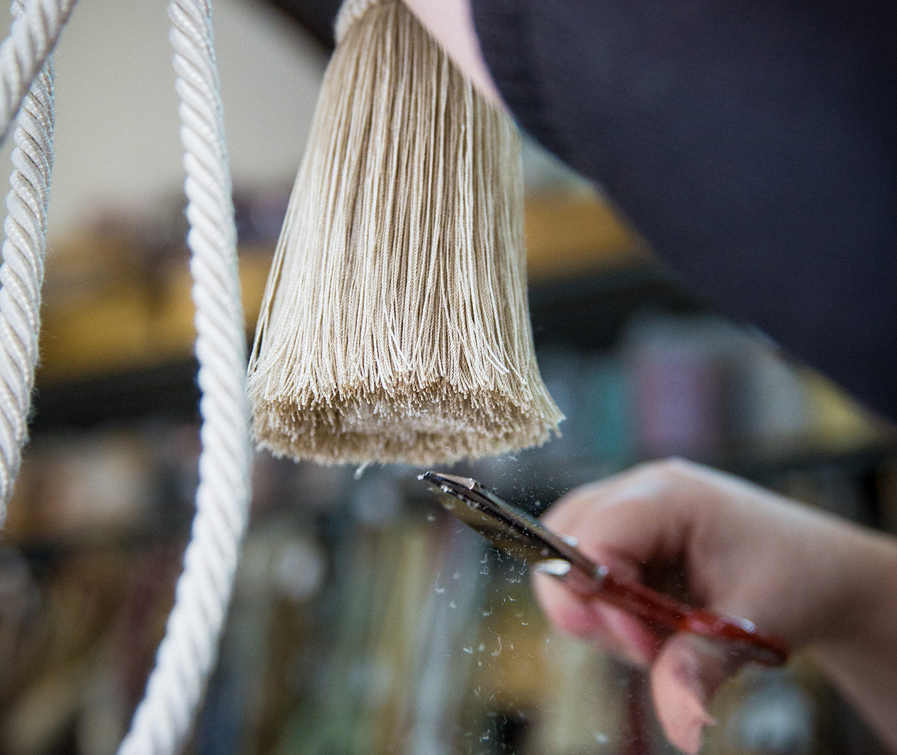 Pompons, embrasses, jasmins, ornements d'effilés, franges et galons sont encore aujourd'hui exécutés à la main par des ouvrières passionnées.